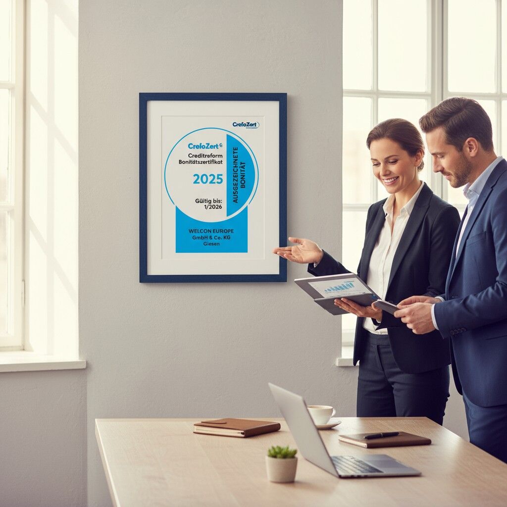 In diesem Zusammenhang ist es uns eine besondere Freude, Ihnen mitteilen zu dürfen, dass die WELCON EUROPE GmbH & Co. KG bereits zum vierten Mal in Folge eine solche Auszeichnung von Credit Reform für ihre finanzielle Stabilität und Zuverlässigkeit erhalten hat – das CrefoZert.