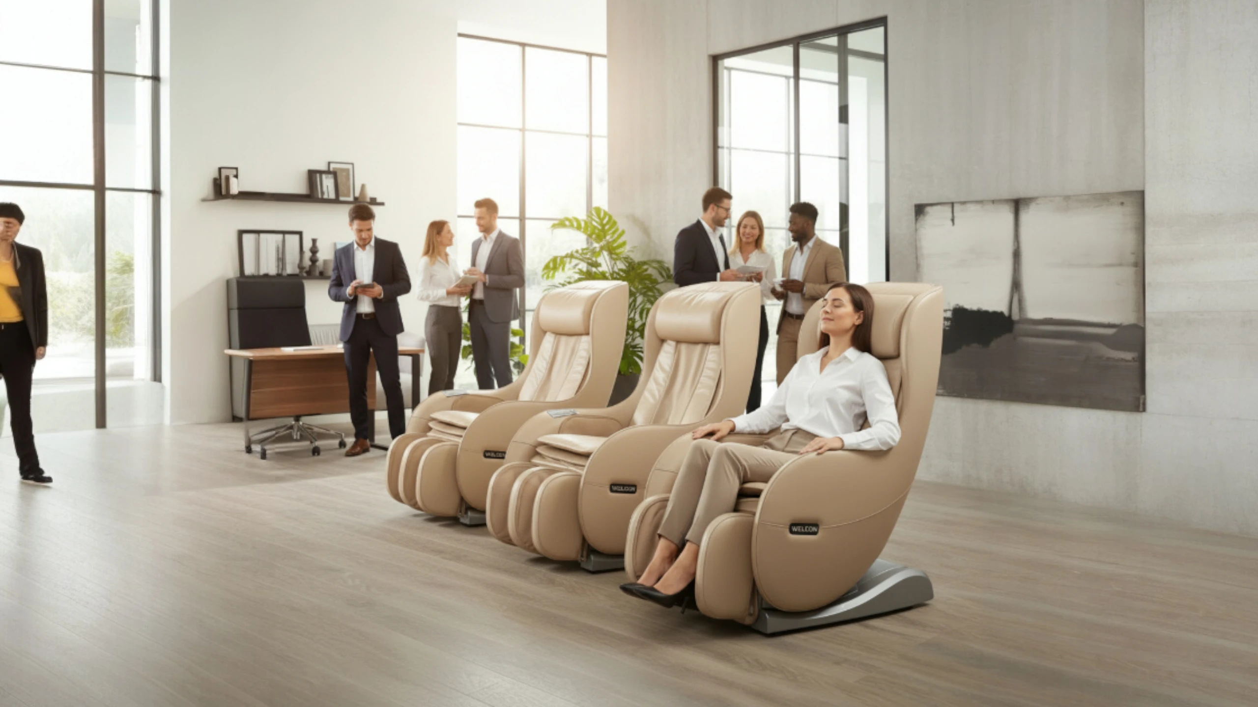 Auch im Büro mit Ruheraum kann ein Massagesessel Teil eines Gesundheitsangebots sein, zum Beispiel zur Entlastung bei sitzender Tätigkeit. Entscheidend bleibt, dass der Sessel nicht zum privaten Ersatzwohnzimmer wird.