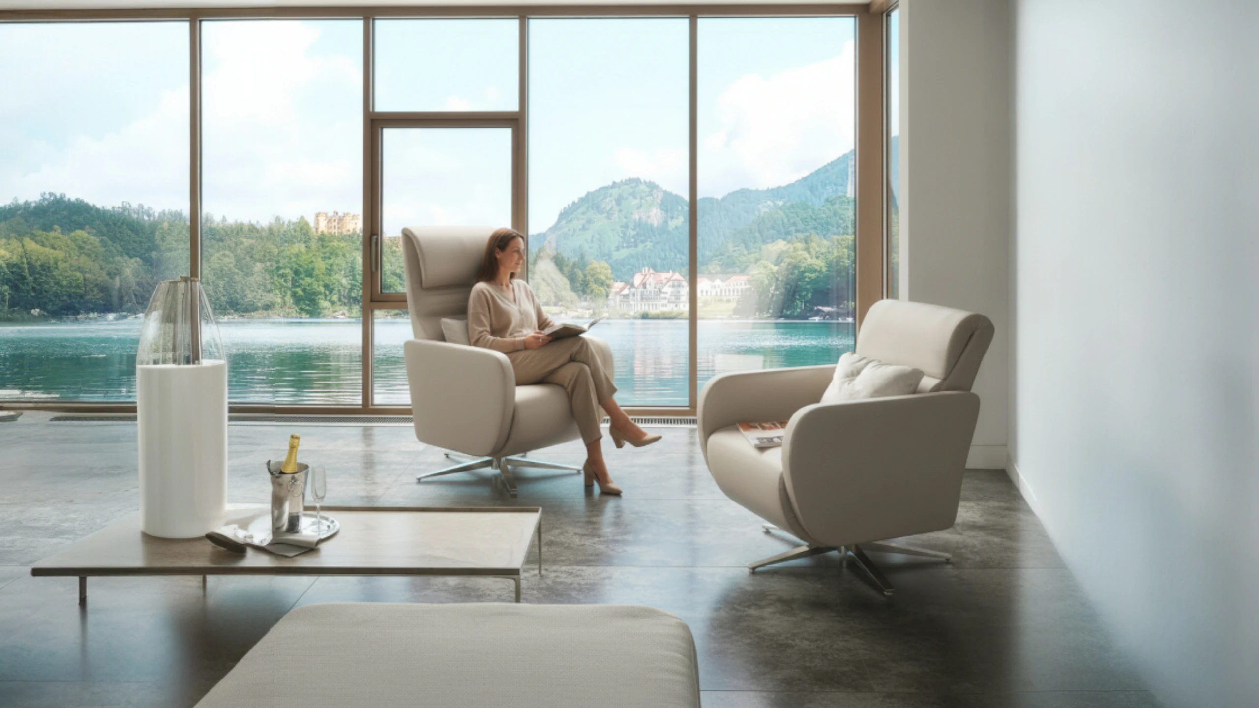 - Sitzhöhe mit Sofa und Couchtisch abgleichen.